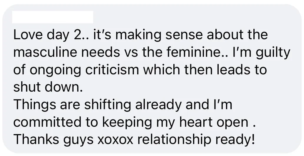The Recreate Your relationship Online challenge will work for you, if you do the work — there’s no magic button. You will have to roll up your sleeves and IMPLEMENT what we teach. But if you’re in a relationship and you're looking for a simple and easy step by step proven framework to improve communication and connection in your relationship and create the relationship of your dreams... then yes this is for you.