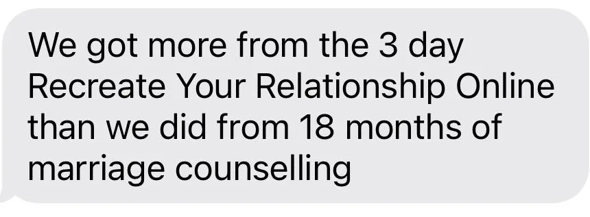 We want the same for you and we're here to support you and guide you to bring back the communication, connection, happiness and love again at the Re-create Your Relationship Online. Click the button below to join us!