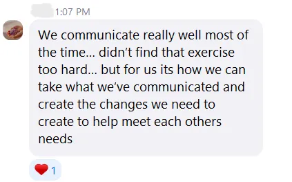 "I realised there are other ways we can move forward in our relationship, it's not just counselling. We got so much out of it feels like it's just the beginning for us"