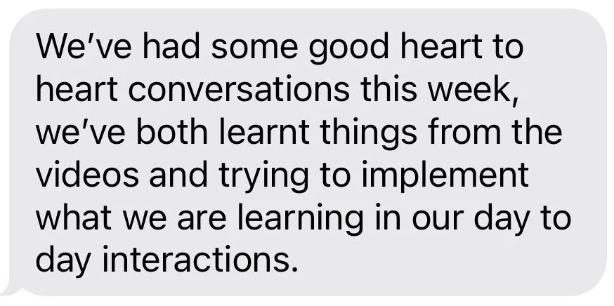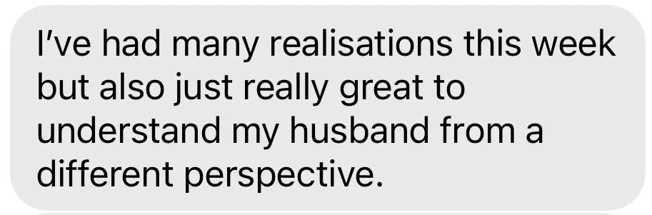 "I realised there are other ways we can move forward in our relationship, it's not just counselling. We got so much out of it feels like it's just the beginning for us"