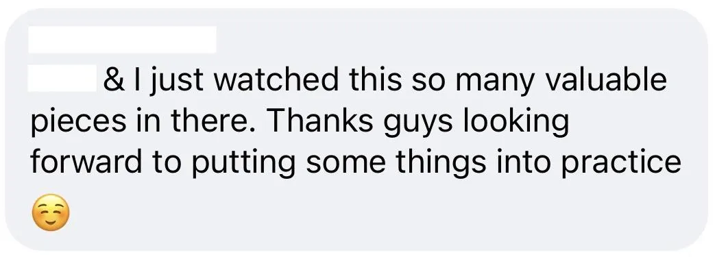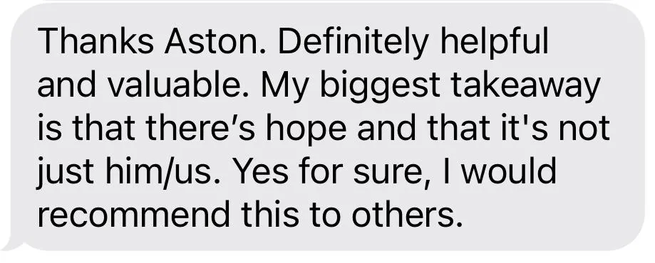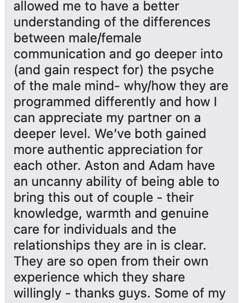 "Thank you so much to Aston & Adam, I am mind blown, I got so much out of this. Thank you also to the amazing people that attended, It's so nice to know we are not alone.”