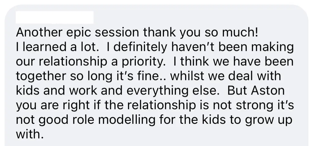 My biggest fear was that my husband and I were drifting apart and we were not modelling love and relationships in a healthy way to our children. We were doing the best we could with what we knew but deep down we knew we could do better, if we had the time, space and someone showed us how.